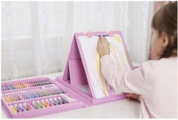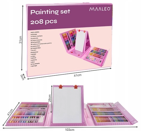 Atraskite kūrybos džiaugsmą su šiuo pilnu dailės rinkiniu. Dėl 208 dalių turėsite platų įrankių spektrą, įskaitant 12 storų flomasterių, 24 pastelinius pieštukus, 24 vaškes pasteles ir 48 aliejines pasteles. Visa tai tvarkingai sudėta į patogų lagaminą, kuris užtikrina lengvą organizavimą ir prieinamumą.