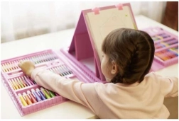 Rinkinį sudaro 208 dalys, įskaitant flomasterius, pastelinius ir vaškinius pieštukus, akvarelinius dažus ir daugybę kitų reikmenų.