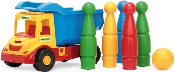 Savadėžis sunkvežimis Multi Truck su judančia krovinių kėbulo dalimi suteikia pramogų mūsų mažiesiems. Rinkinyje yra kėglių komplektas su 5 spalvingais kėgliais ir kamuoliu.
