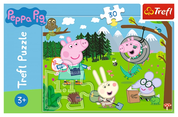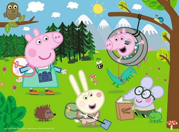 Peppa Pig Miško žygio dėlionė įkvėpta populiaraus vaikų animacinio serialo Peppa Pig. Ši didelė dėlionė iš tvirto kartono sukurta specialiai patiems mažiausiems. Ryškios spalvos ir gražūs gyvūnėlių raštai skatina vaikus žaisti.
