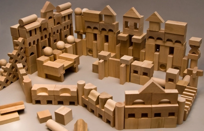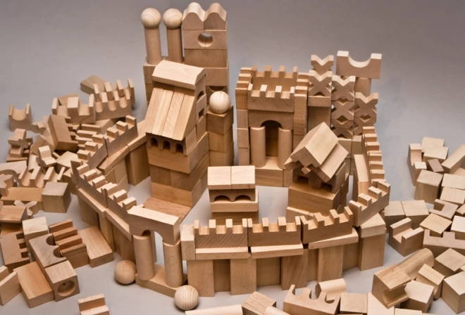 EkoToys natūralios medinės kaladėlės 220 vnt XL