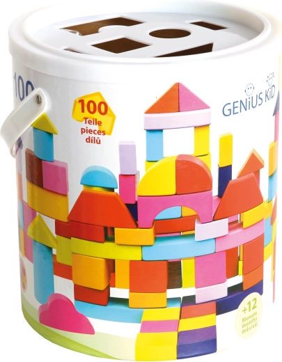 Atraskite kūrybišką pasaulį su spalvingomis medinėmis kaladėlėmis patogiame kibirėlyje! Rinkinyje yra 100 dalių įvairių formų ir ryškių spalvų, kurios skatina vaizduotę, lavina smulkiąją motoriką ir padeda mokytis formų. Kibirėlio dangtelis veikia kaip žaisminga rūšiavimo lenta, padedanti vaikams lavinti koordinaciją ir formų atpažinimą.