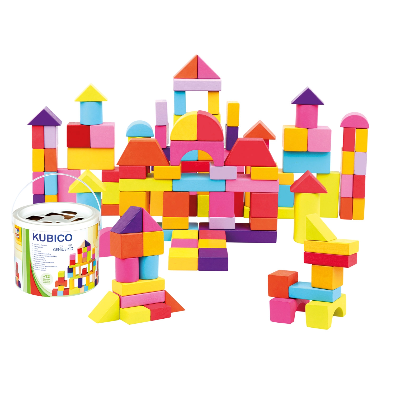 Idealu vaikams nuo 1 metų: kaladėlės turi maloniai lygų paviršių, ryškias, saugias spalvas ir įvairias formas – nuo kubelių ir gretasienių iki cilindrų, lankų ir trikampių. Žaidimas kaladėlėmis skatina erdvinį suvokimą, kūrybiškumą ir akies–rankenos koordinaciją.