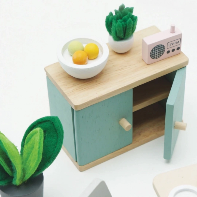 Šis žavus valgomojo rinkinys pagamintas iš aukštos kokybės FSC sertifikuotos medienos ir suteikia kiekvienam lėlių nameliui rafinuotumo. Sudarytas iš 18 dalių, įskaitant stalą, dvi kėdes, suoliuką, lempą, indaują ir dekoratyvinius aksesuarus, tokius kaip augalai, vaisių dubuo ir tortas. Šis rinkinys ne tik atrodo puikiai, bet ir skatina vaikų pažintinius bei komunikacinius gebėjimus. Jis dekoruotas netoksiškais vandens pagrindo dažais ir suderinamas su kitais Le Toy Van Dolls nameliais.