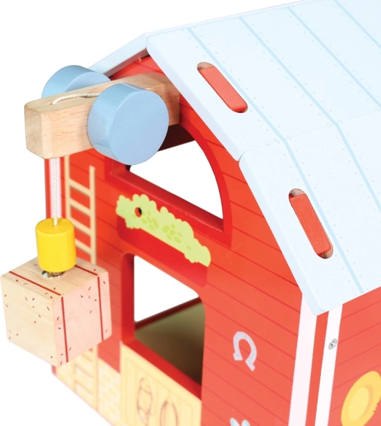Patogus magnetinis skriemulys su virve leidžia vaikams kelti „šieno ryšulius“ ir perkelti juos į tvarto palėpę – realistiškas žaidimas, kuris ir linksmina, ir moko.
