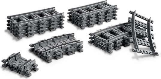 Pakuotėje rasite tiesių ir lenktų elementų derinį lanksčiam išdėstymui. Dalys yra tvirtos, patvarios ir visiškai suderinamos su LEGO City traukinių rinkiniais, todėl be vargo pritaikysite maršrutą pagal savo fantaziją.