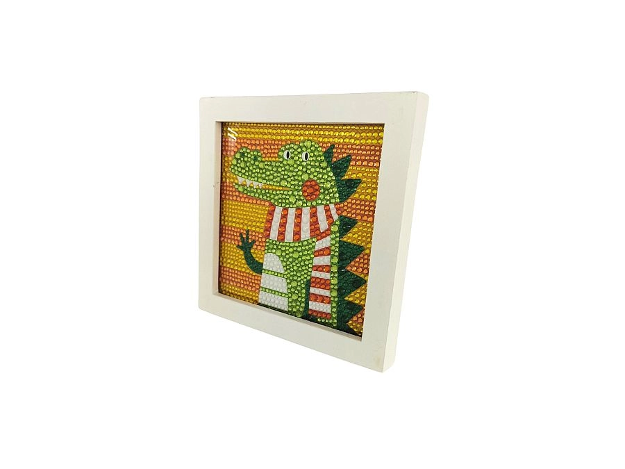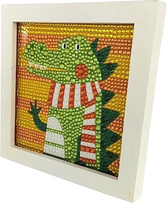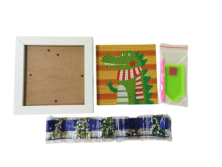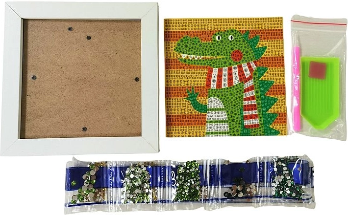 Atraskite linksmą deimantų mozaiką su krokodilo motyvu, kuri lavina smulkiąją motoriką, kantrybę ir kūrybiškumą. Rinkinyje yra viskas, ko reikia lengvam kūrimui ir spindinčiai dekoracijai rėmelyje sukurti.