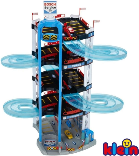 Šis tvirtas 5 aukštų BOSCH Service parkavimo garažo kompleksas iš Klein sukurtas mažiesiems lenktynininkams. Jis siūlo pusiau permatomas dvigubas spiralines rampas nuo viršutinio aukšto iki apačios, rankiniu būdu valdomą keltuvą mašinėlių perkėlimui tarp aukštų ir lenktynių startą/finišą dviem mašinėlėms. Kiekviename lygyje rasite pakankamai parkavimo vietų, o pirmame aukšte papildomai yra aptarnavimo zona su „stotimi“ realistiškam žaidimui.
