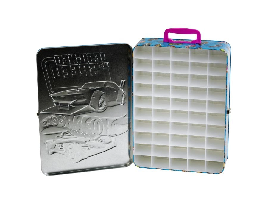 Šis praktiškas ir patvarus lagaminėlis yra puikus sprendimas visiems mažiems ir dideliems HOT WHEELS gerbėjams. Dėl kokybiškos aliumininės konstrukcijos ir apgalvoto vidaus išdėstymo jūsų modeliai visada bus tvarkingai sudėti ir apsaugoti. Ergonomiška oranžinė rankena palengvina nešiojimą, tad savo kolekciją galėsite pasiimti bet kur.