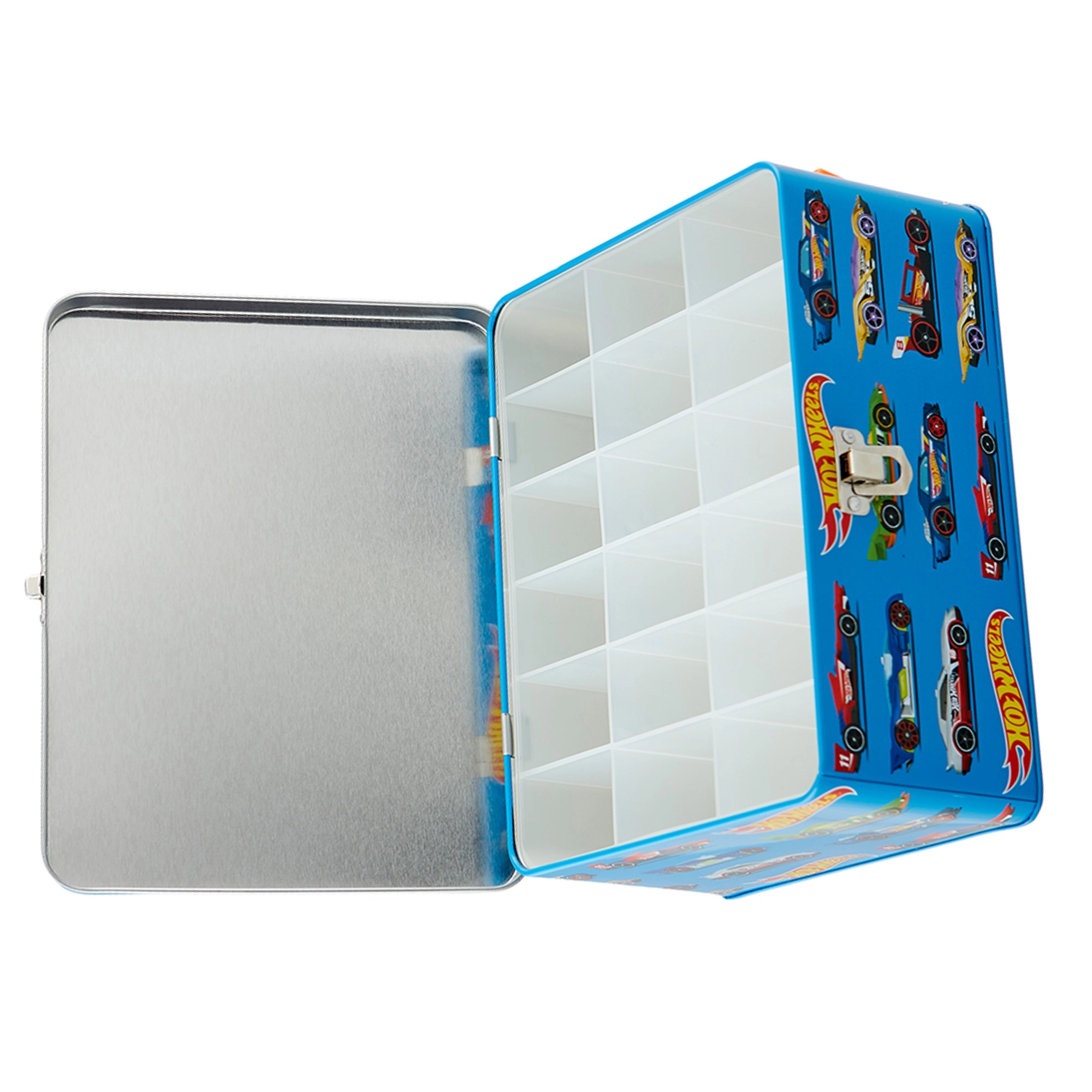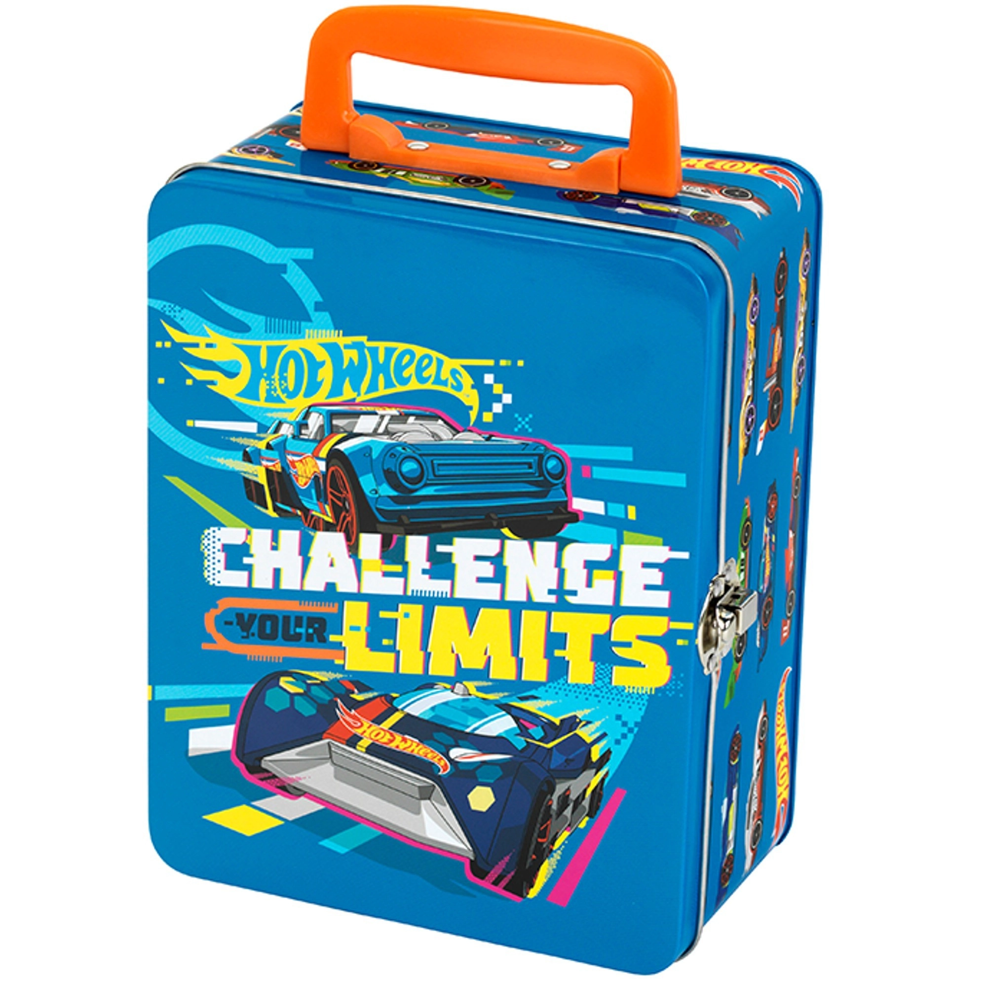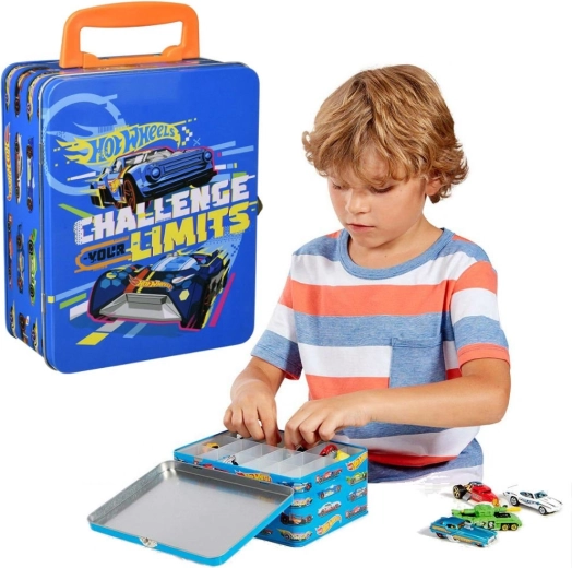 Šis stilingas mėlynas lagaminėlis su lenktyninių automobilių grafika ir šūkiu „Challenge Your Limits“ – puikus sprendimas visiems mažiesiems kolekcionieriams. Viduje rasite išimamą tinklelį su 18 atskirų skyrelių, kurie laiko mašinėles tvarkingai atskirtas ir apsaugotas. Tvirta metalinė konstrukcija ir patikimas segamo tipo užsegimas užtikrina saugų laikymą nešiojant.
