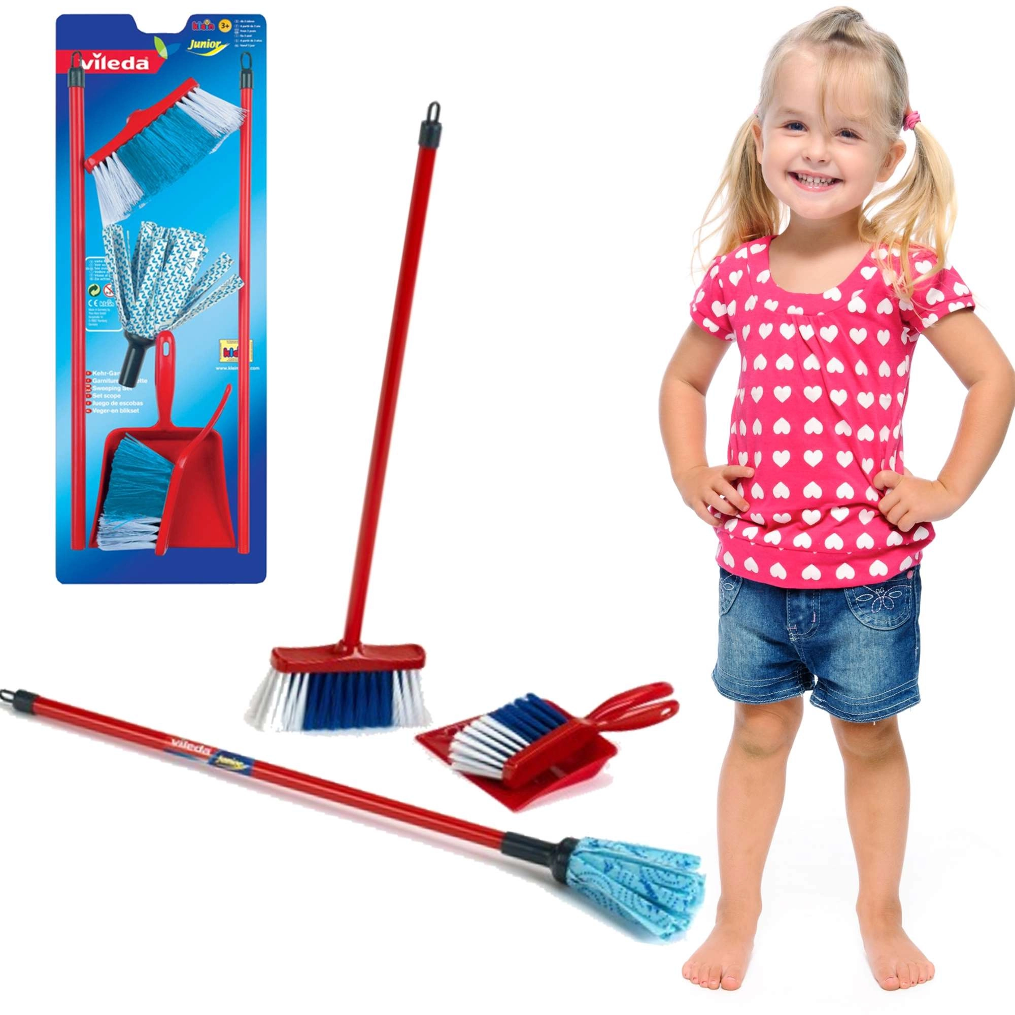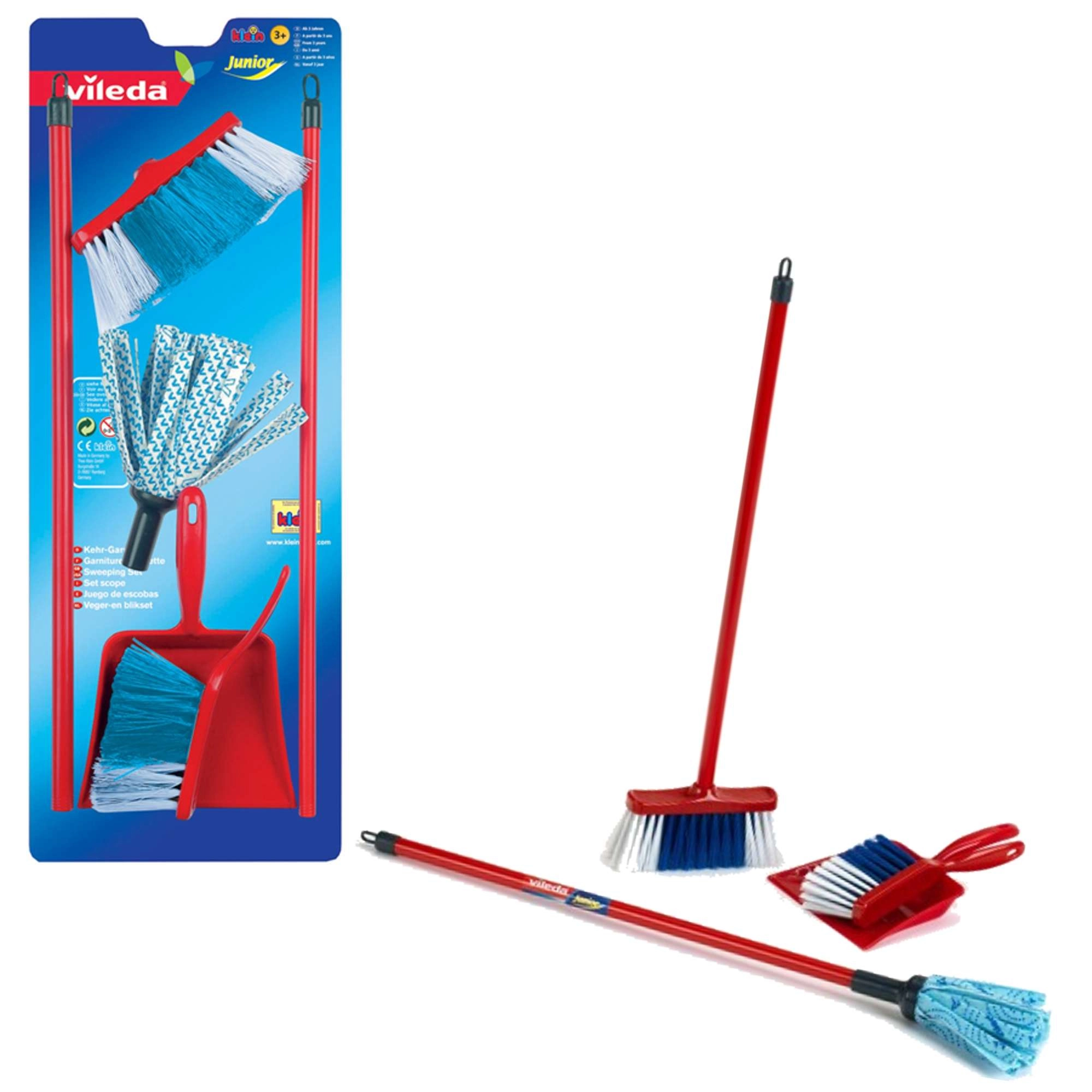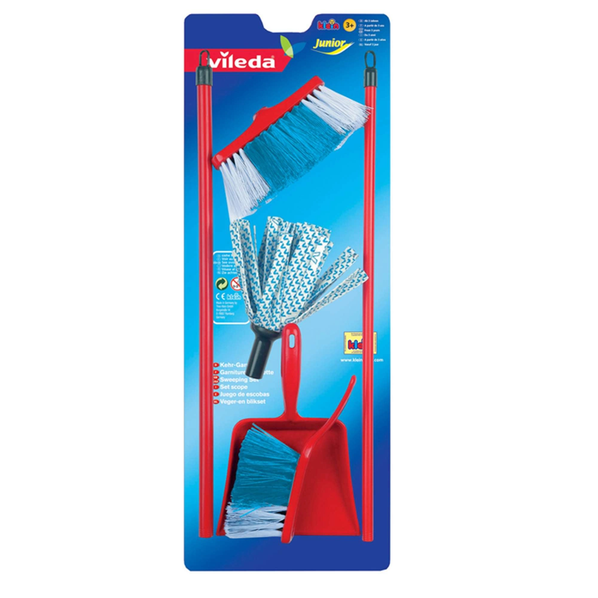 Realistiškas vaikiškas valymo rinkinys pagal Vileda licenciją iš KLEIN pradžiugins mažus pagalbininkus, mėgstančius mėgdžioti suaugusiuosius. Rinkinyje yra mopas, šluota, semėtis ir rankinis šepetėlis lengvo svorio, vaikams pritaikytų matmenų. Mažas svoris, tvirtas pagaminimas ir tikroviškas tikrų valymo priemonių dizainas skatina ir žaidimą, ir tvarkos mokymąsi.