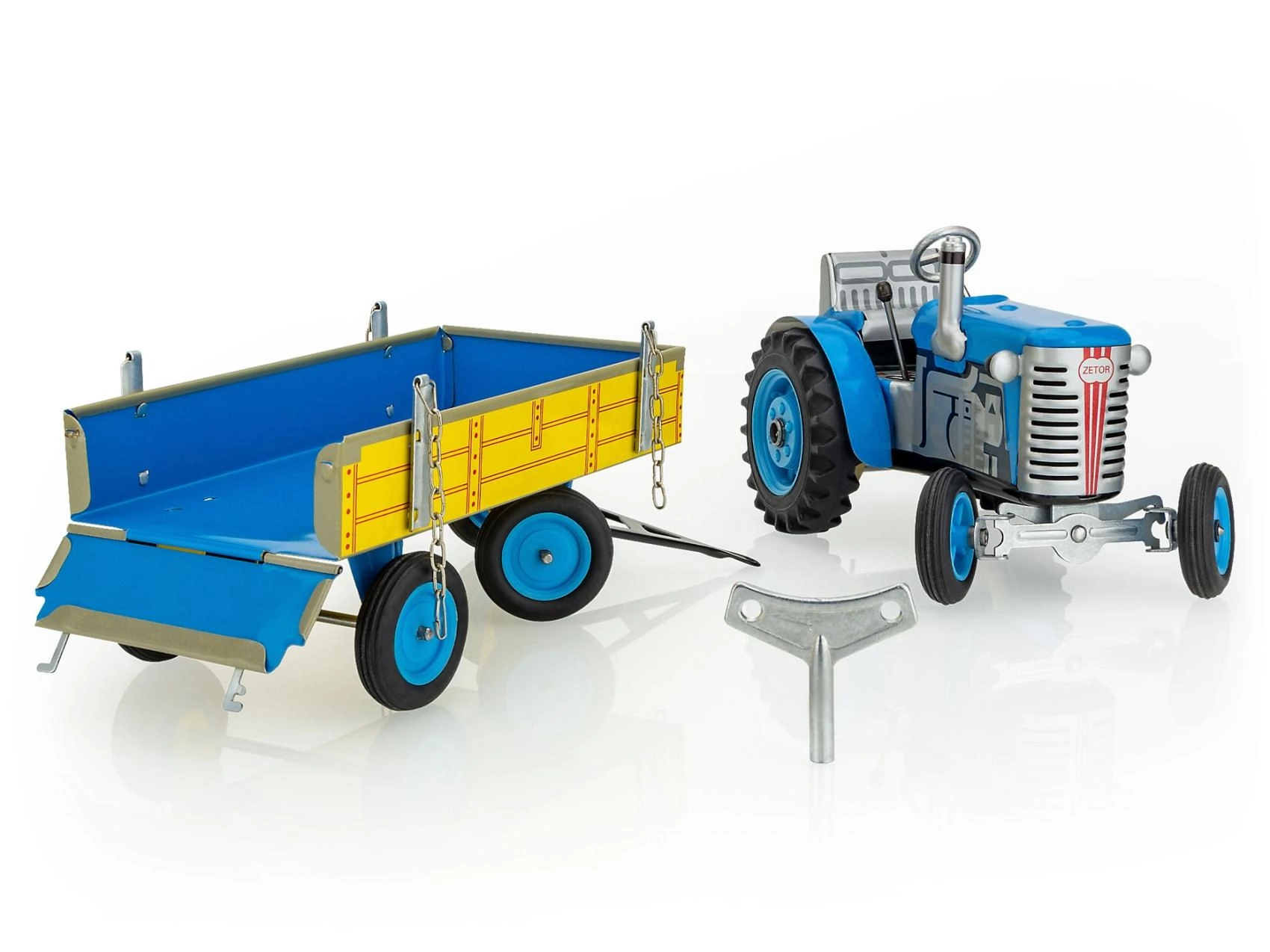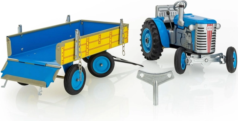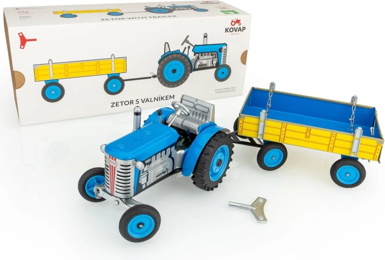 Šis preciziškai pagamintas metalinis ZETOR traktorius su priekaba iš čekų prekės ženklo KOVAP veikia su klasikiniu užvyniojamu rakteliu. Dėl tikros pavarų dėžės ir rankinio stabdžio jis suteikia realistišką valdymą ir valandas pramogų. Puikiai tinka vaikams nuo 3 metų ir tradicinių skardinių žaislų kolekcionieriams.