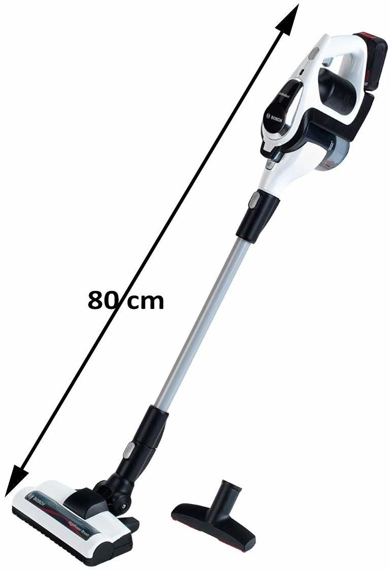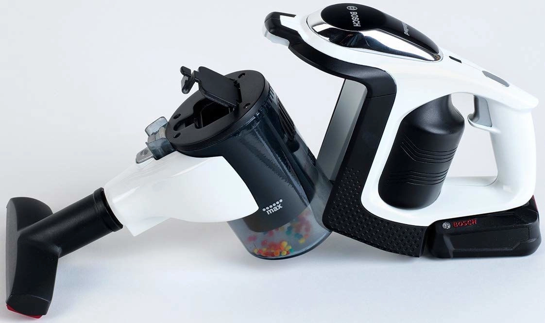 Autentiškas vaikiškas dulkių siurblys BOSCH Unlimited juodos ir baltos spalvų derinio su sidabriniu vamzdžiu ištikimai atkartoja tikrą prietaisą. Dėl LED apšvietimo ir besisukančių kamuoliukų skaidrioje talpoje „siurbiant“ atrodo labai tikroviškai ir kartu išlieka visiškai saugus žaidimams.