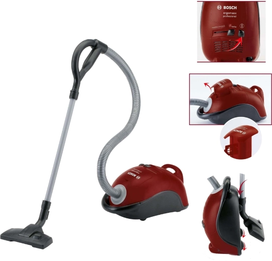Realistiškas vaikiškas dulkių siurblys su BOSCH licencija iš Klein suteikia vaikams smagų ir saugų tvarkymosi žaidimą. Jis turi raudoną dizainą su juodomis detalėmis, garsinius efektus tarsi tikras siurblys ir veikiančią granulių siurbimo funkciją į permatomą talpyklą. Dėl ratukų, patogios rankenos ir lengvos konstrukcijos jį lengva valdyti; jis skatina vaidmenų žaidimus ir lavina smulkiąją motoriką.