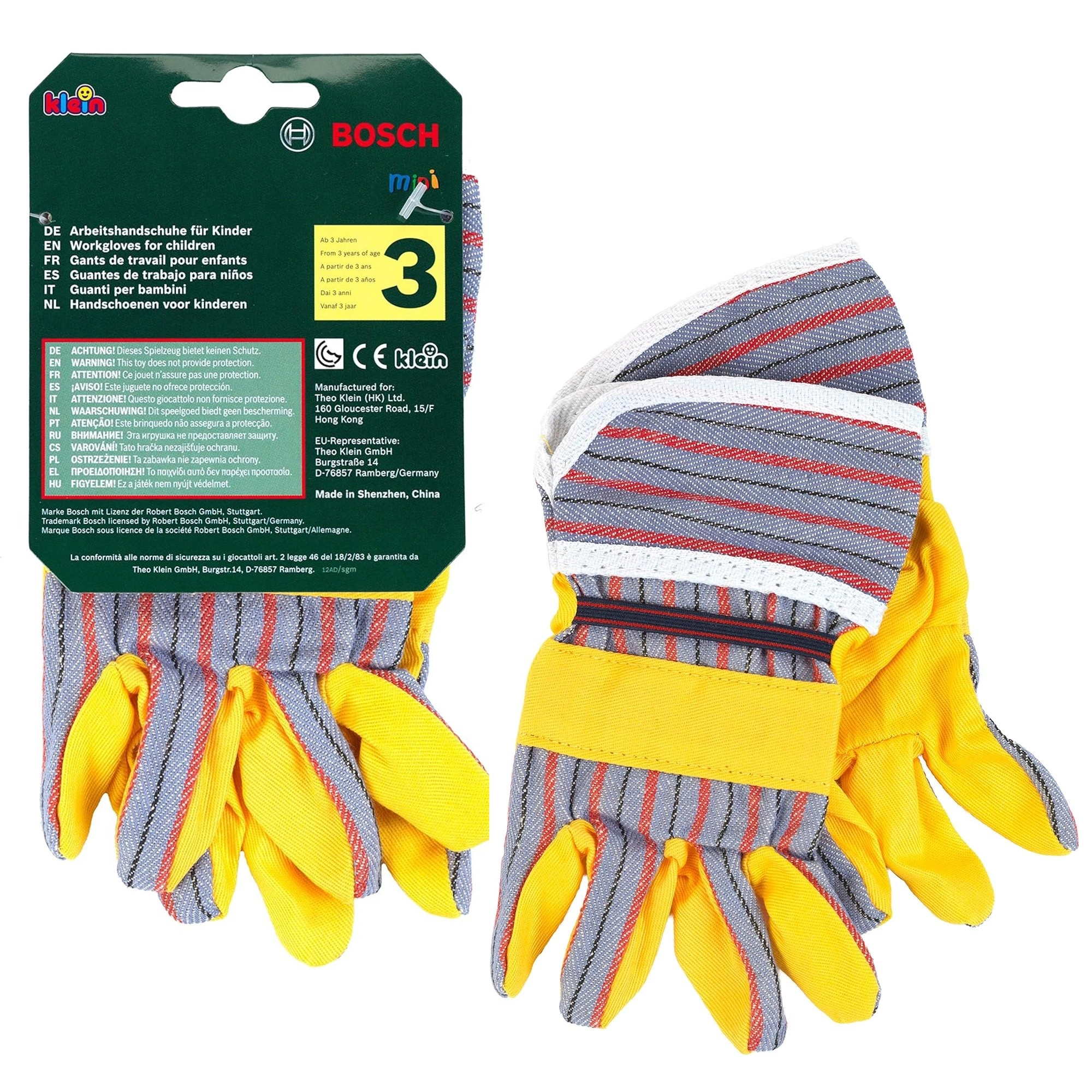 Puikiai papildo kitus BOSCH mini serijos rinkinius – nuo gręžtuvų ir sodo įrankių iki statybinių priedų. Pirštinės skirtos žaidimams ir kostiumams, motyvuoja vaikus mėgdžioti suaugusiuosius atliekant lengvus namų ir lauko darbus.