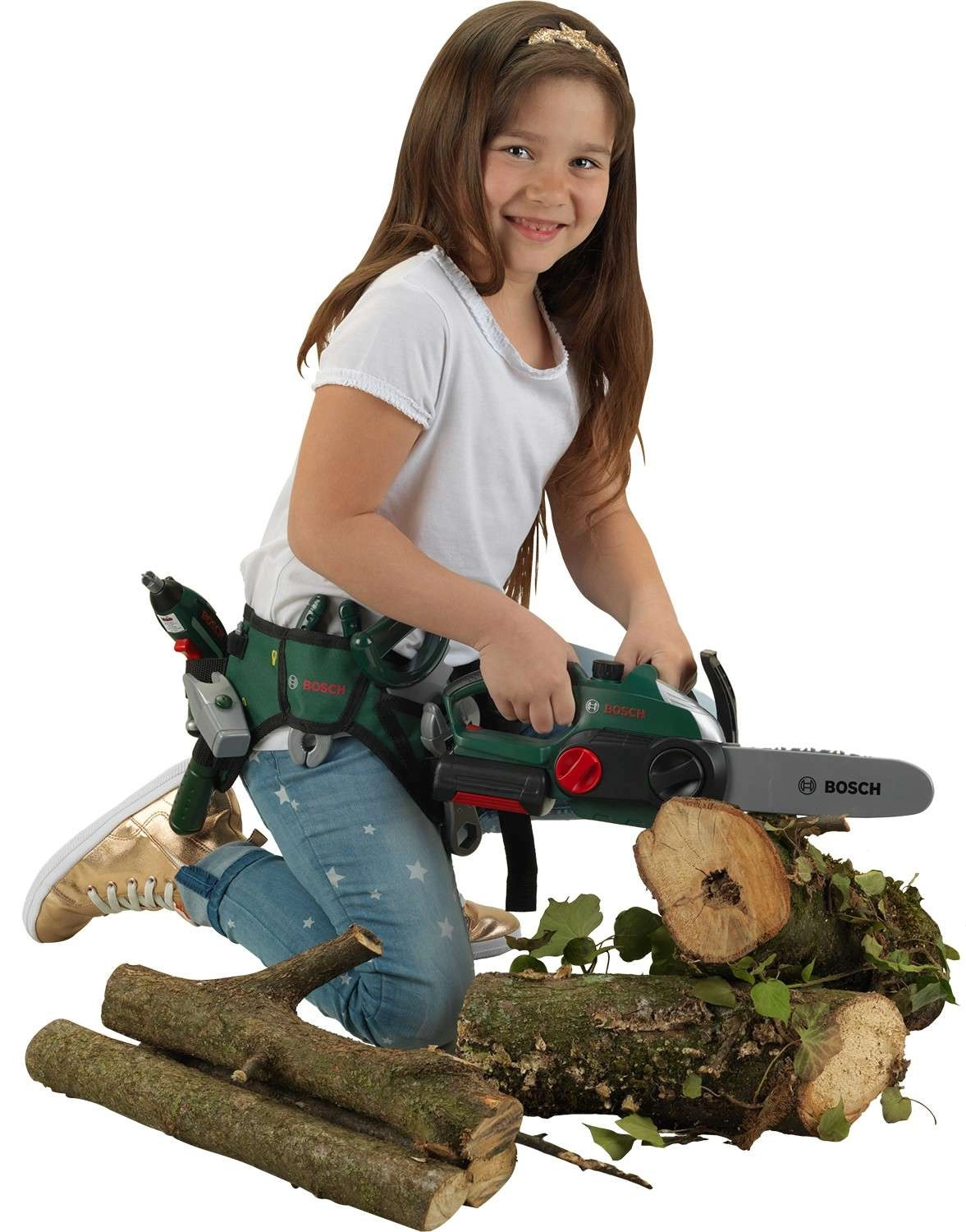Šis vaikiškas belaidis grandininis pjūklas ištikimai atkuria tikrą BOSCH įrankį – įskaitant tamsiai žalią spalvą su raudonais ir sidabriniais elementais. Jis pagamintas tvirtai ir su dėmesiu detalėms, todėl vaikai galės saugiai mėgdžioti medkirčius ar sodininkus.