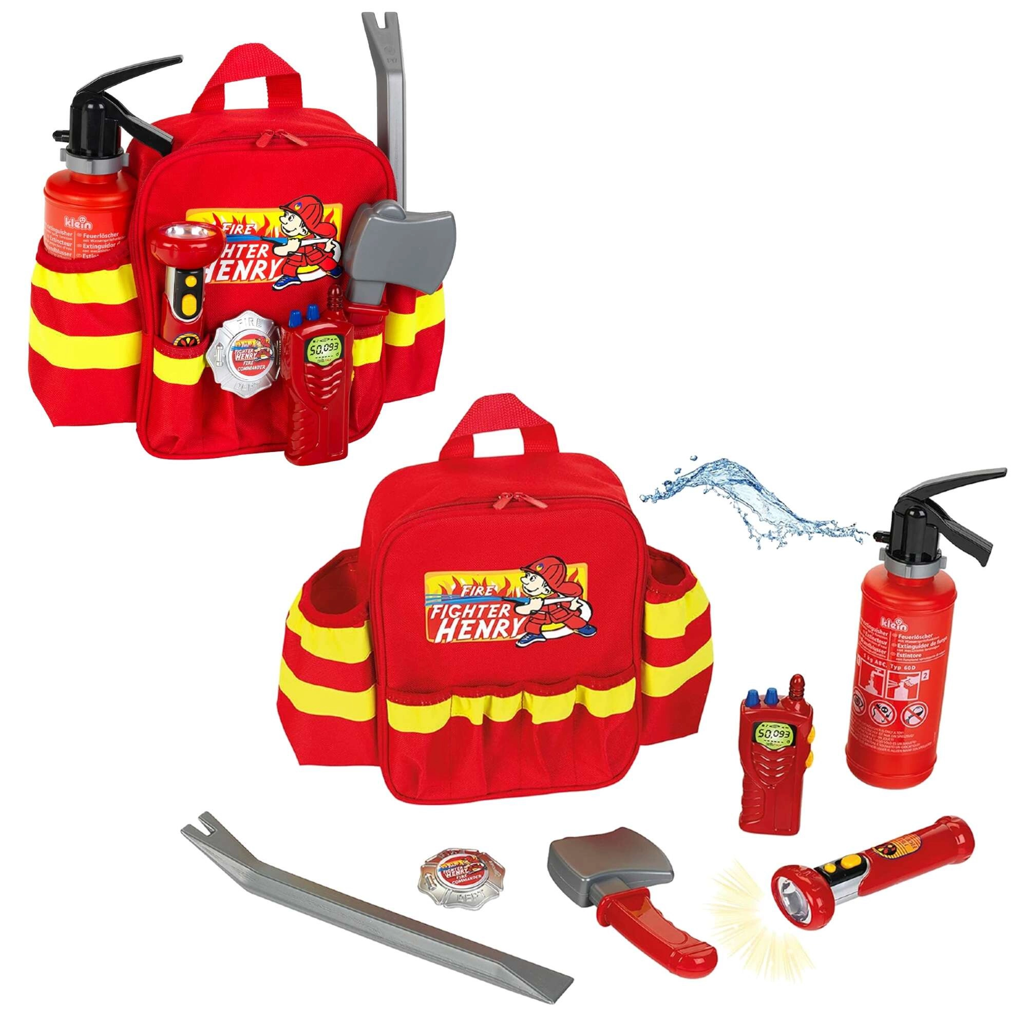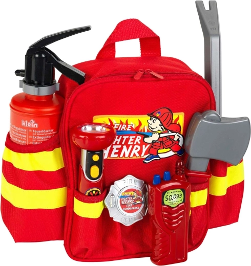 Raudonas vaikiškas gaisrininko rinkinys iš KLEIN siūlo viską realistiškam gaisrininko žaidimui: kuprinę su atšvaitinėmis juostomis, vandens gesintuvą, šviečiančią žibintuvėlį, ženklelį, kirvuką, laužtuvą ir raciją. Dėl reguliuojamų dirželių ir lengvos konstrukcijos idealiai tinka ikimokyklinukams ir skatina vaizduotę, vaidybą ir saugų žaidimą.