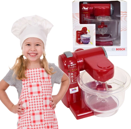 Realistiškas vaikiškas virtuvinis kombainas su BOSCH licencija pradžiugins mažus virėjus. Jame yra nuimamas skaidrus dubuo, pakeliamas svirties/galvos mechanizmas, 2 greičio lygiai ir šviesos bei garso efektai. Kompaktiškas dydis idealiai tinka vaikų rankoms, o saugi plastikinė konstrukcija skatina kūrybišką kepimo ir gaminimo žaidimą.
