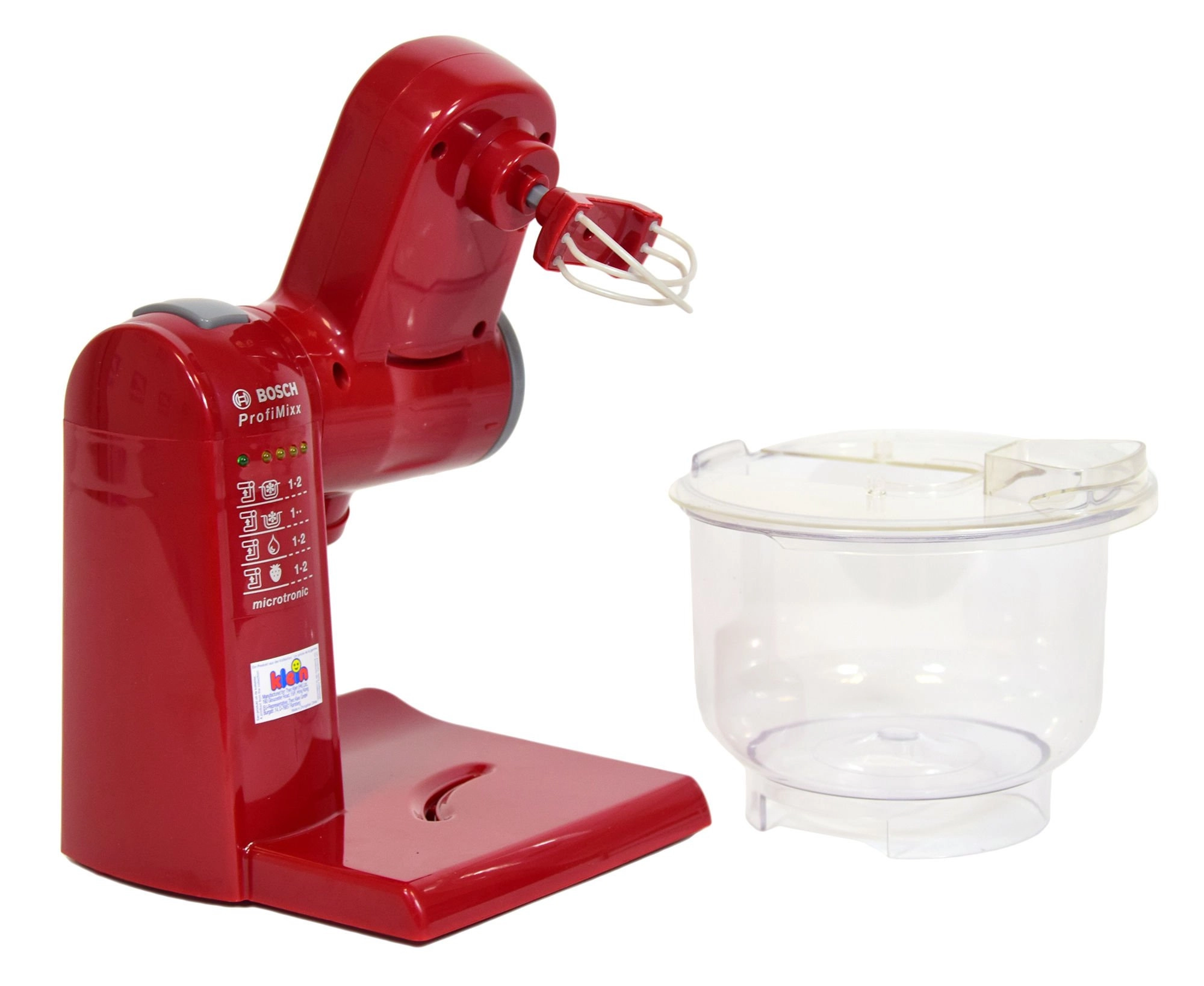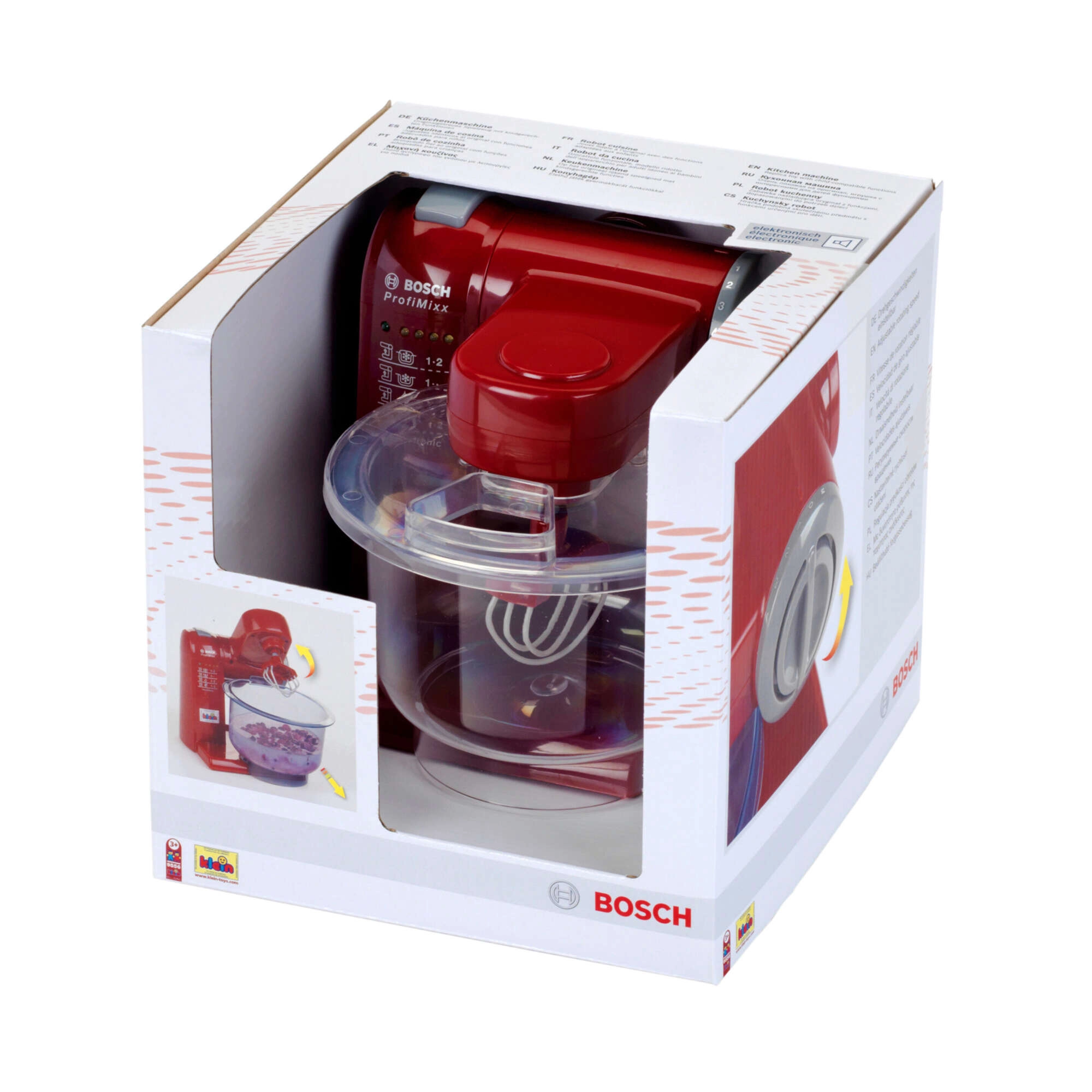 Šis stilingas bordo spalvos vaikiškas virtuvinis kombainas ištikimai atkuria originalų BOSCH prietaisą. Dėl šviesos ir garso efektų jis veikia tarsi tikras įrenginys ir motyvuoja vaikus mėgdžioti suaugusiuosius gaminant. Lengva konstrukcija ir saugios medžiagos užtikrina patogų bei rūpestį mažinantį naudojimą.