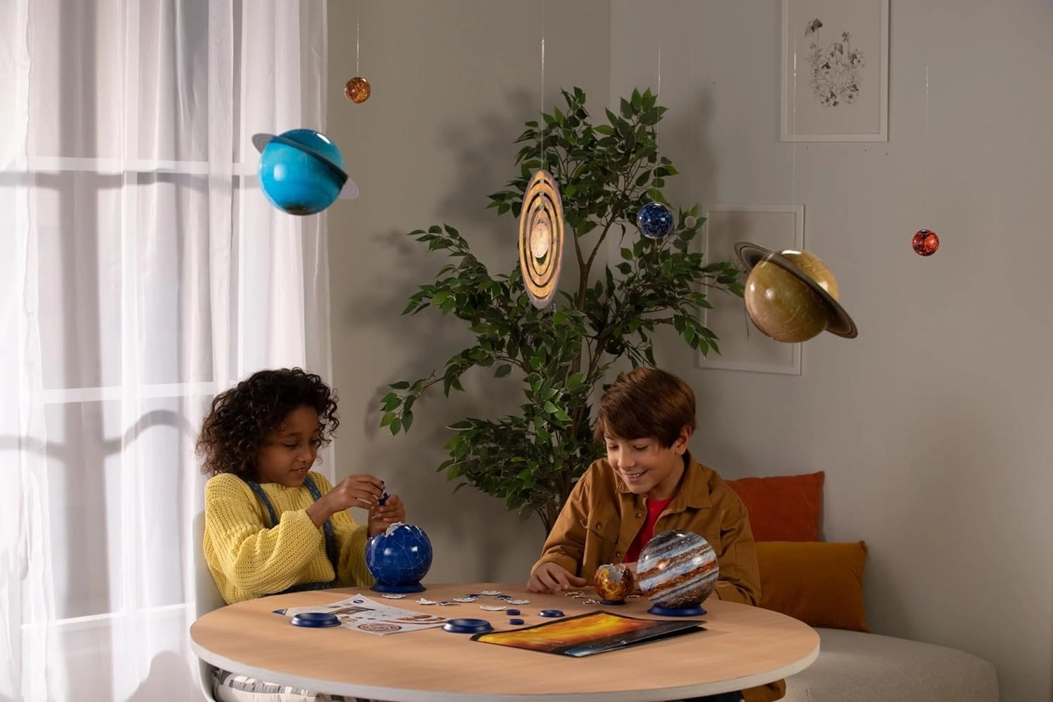 Surenkite 8 skirtingo dydžio ir spalvų planetas, papildykite jas žiedais, Mėnuliu ir eksponuokite ant stovelių arba pakabinkite.