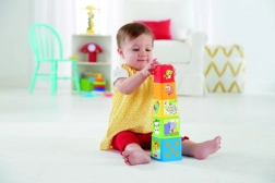 Atraskite pramogų ir mokymosi pasaulį su Spalvota Fisher-Price dėžute-vėže. Šis žaislas puikiai tinka vaikams nuo 6 mėnesių, kurie gali tyrinėti įvairius paveikslėlius ir tekstūras ant kaladėlių. Kaladėles galima statyti į vėžę arba sudėti vieną į kitą, o tai suteikia begalines žaidimo galimybes.