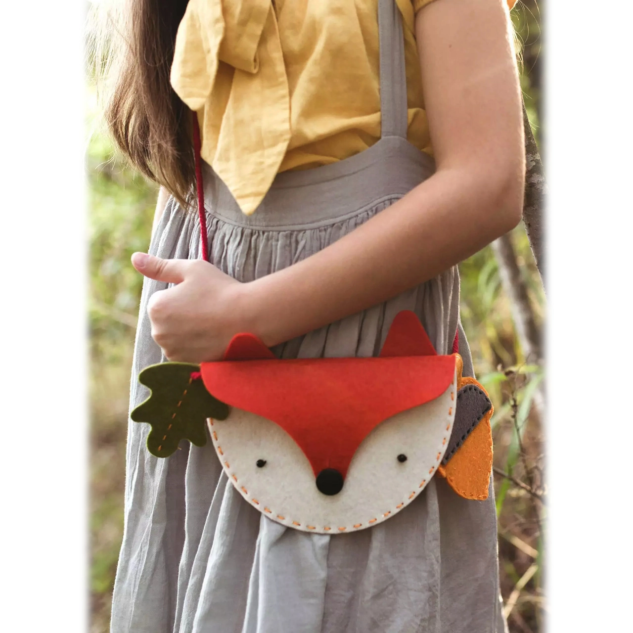 Susikurkite originalią vaikišką per petį nešiojamą rankinę lapės galvutės formos ir derančią mini piniginę su užtrauktuku gilės formos.