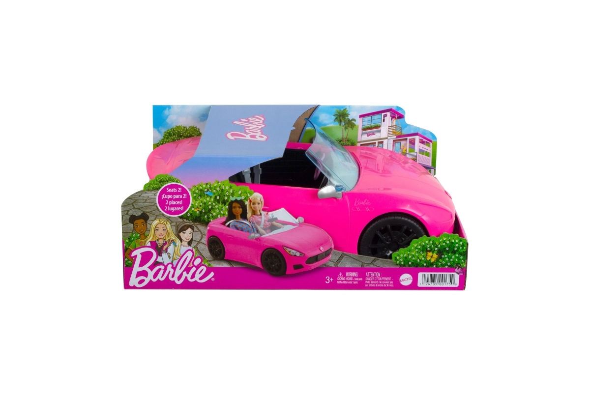 Barbės kabrioletas siūlo realistiškas detales klasikiniu Barbės stiliumi, tokias kaip personalizuotas numerio ženklas ir Barbės simbolis ant kapoto. Pasodinkite dvi Barbės lėles (parduodamos atskirai) į sėdynes ir pastūmėkite automobilį – dėl besisukančių ratų leiskitės į nuotykį. Lėlės parduodamos atskirai. Spalvos ir dekoracijos gali skirtis.