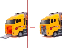 Šis 2-i-1 pervežėjas ir žaidimų rinkinys jungia pramogą su praktiškumu. Vilkikas su permatomomis sienelėmis talpina šešis detaliai sukurtus statybinius automobilius ir kartu veikia kaip kompaktinis organizatorius. Vaikai mėgausis realistišku statybų žaidimu dėl judančių dalių ir išmanios išvažiuojančios rampos su mygtuku.