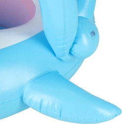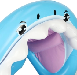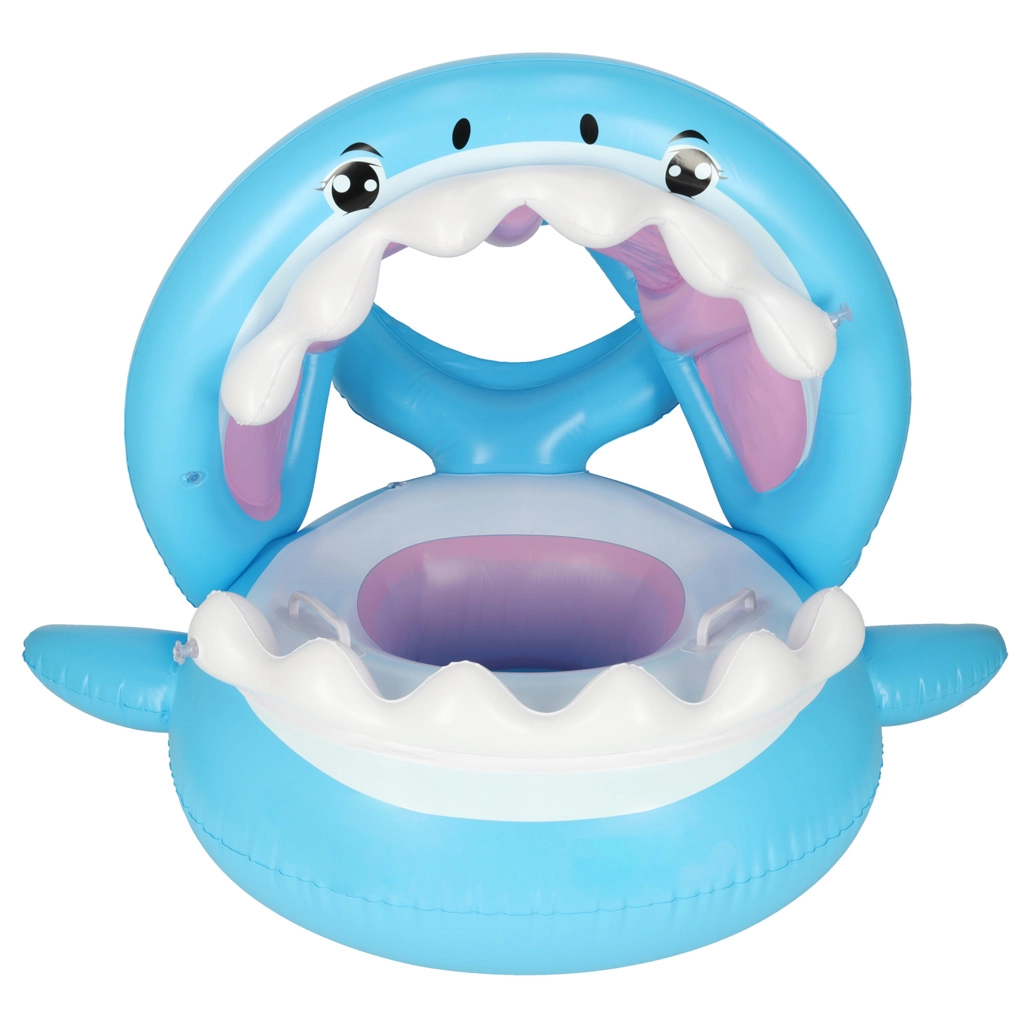 Pripučiamas vaikiškas vandens krėslas su linksmu ryklio dizainu puikiai tinka pirmai pažinčiai su vandeniu baseine, upėje ar ežere. Nusegamas stogelis saugo nuo saulės, o sėdynė su kojų perkišimo angomis laiko vaiką stabiliai ir patogiai.