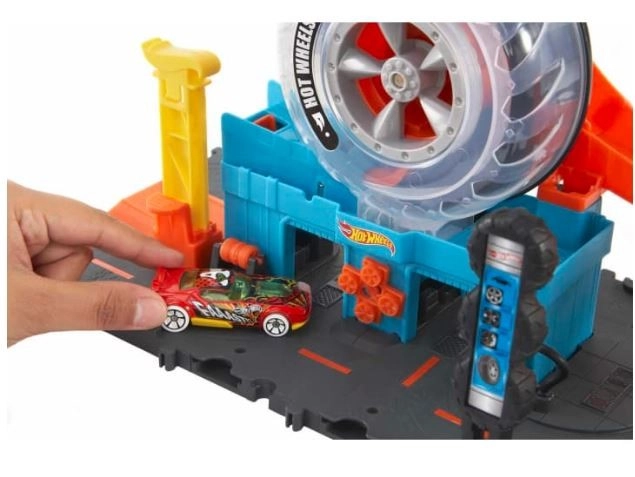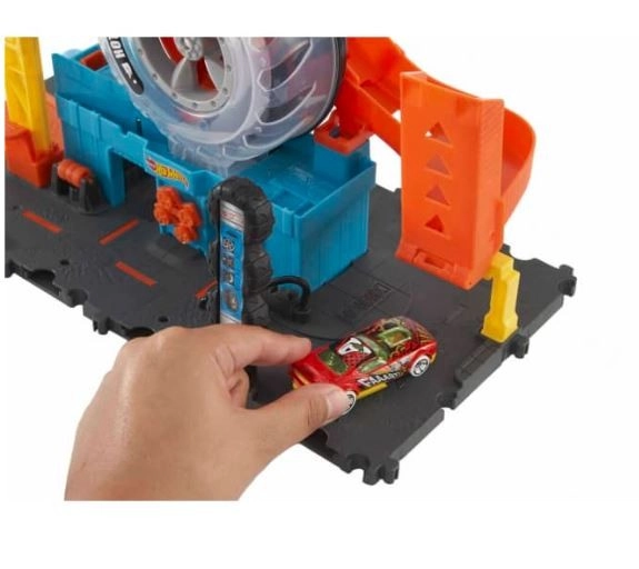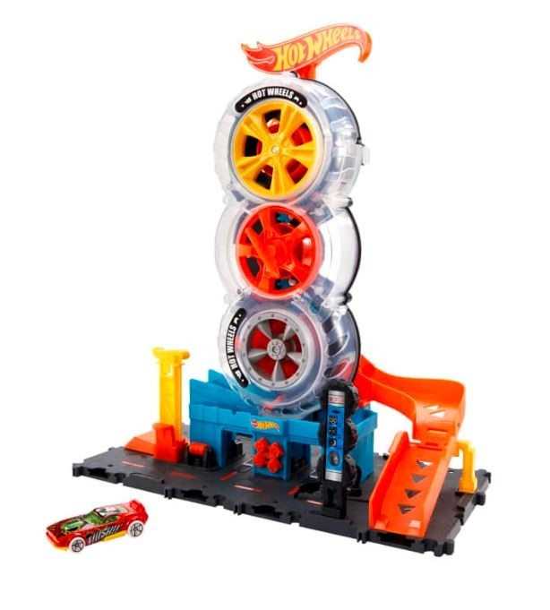 Įtraukite savo vaikus į Hot Wheels pasaulį, kupiną veiksmo ir kūrybiškumo. Hot Wheels miestas Super Twist padangų servisas suteikia daug pramogų su realistiškomis detalėmis, tokiomis kaip besisukantis padangų ekranas ir raktas, kuris kelia automobilius struktūra aukštyn į naujus nuotykius.
