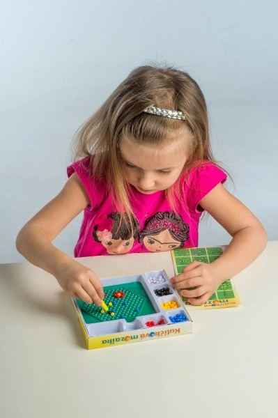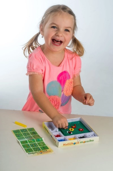 Ši mozaika – puikus pasirinkimas pirmajam kūrybiniam darbui. Vaikai pincetu įstato spalvotus rutuliukus į pagrindą ir kuria tiek paprastus, tiek sumanius motyvus. Veikla skatina kantrybę, akių–rankų koordinaciją ir smulkiosios motorikos vystymąsi.