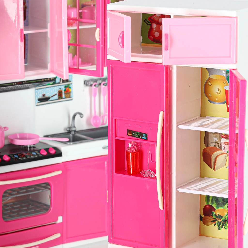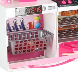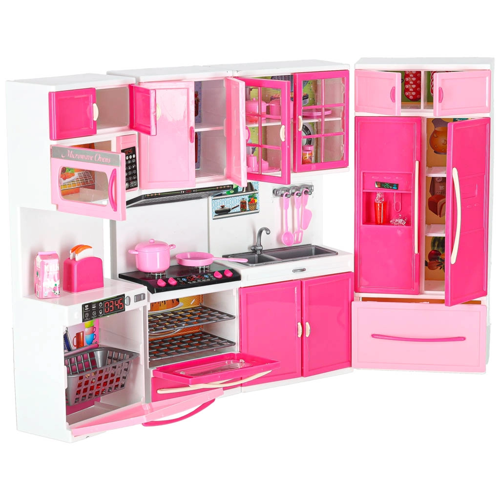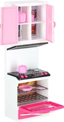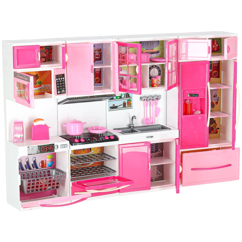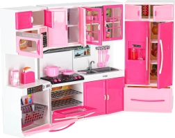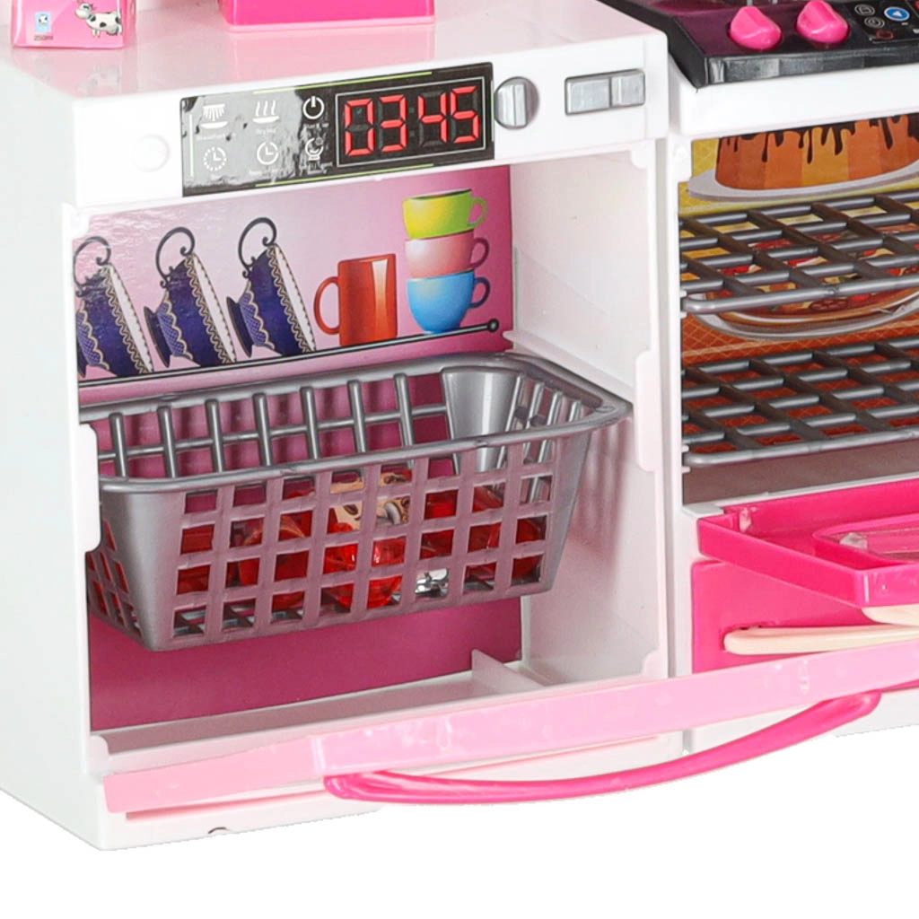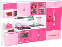 Stilinga rožinė–balta lėlių virtuvėlė sudaryta iš keturių modulių su LED apšviestais degikliais ir garso efektais. Ji turi atidaromas dureles, mikrobangų krosnelę, orkaitę, indaplovę, šaldytuvą ir kriauklę bei gausius priedus realistiškam maisto gaminimo žaidimui ir virtuvės tvarkymui.