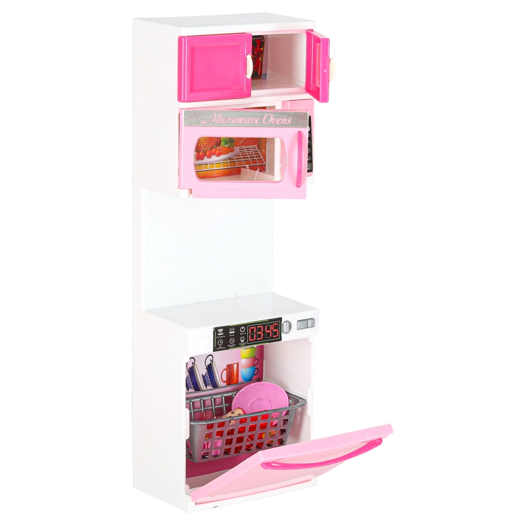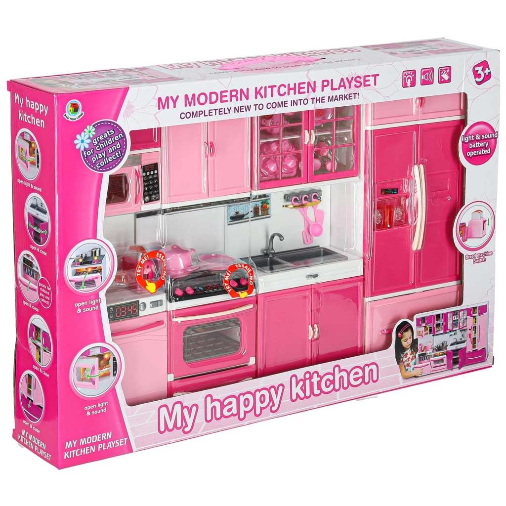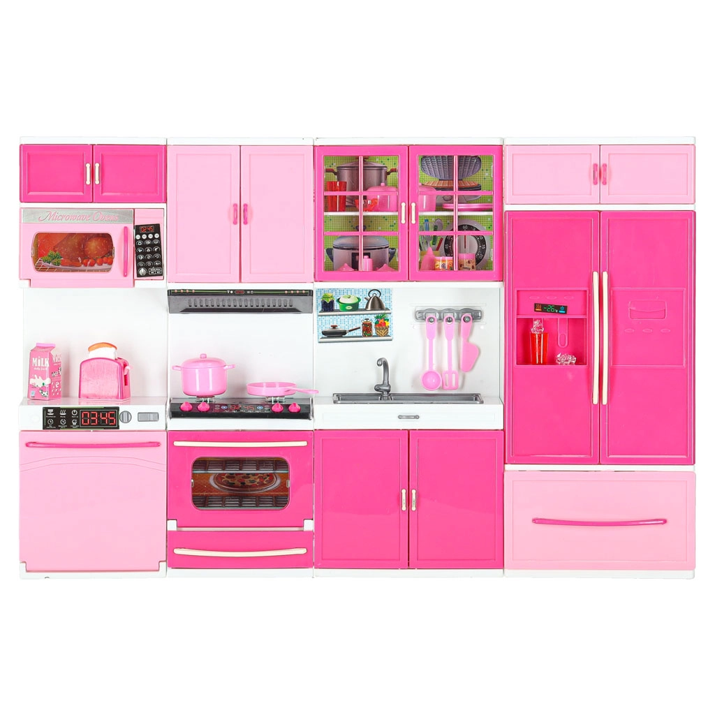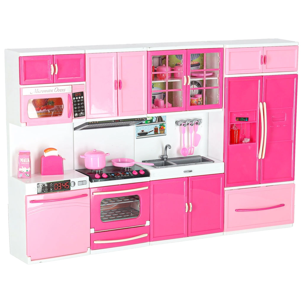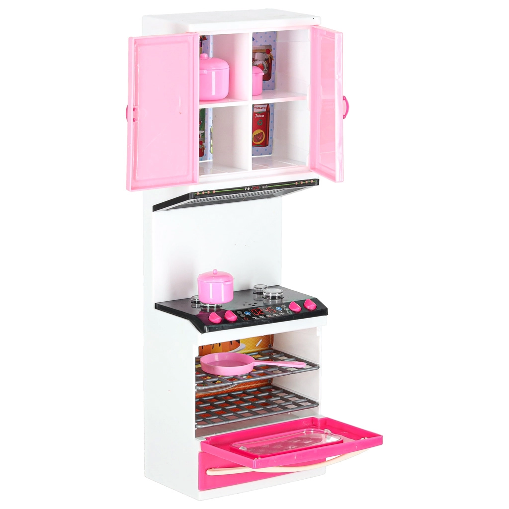 Stilinga rožinė–balta lėlių virtuvėlė sudaryta iš keturių modulių su LED apšviestais degikliais ir garso efektais. Ji turi atidaromas dureles, mikrobangų krosnelę, orkaitę, indaplovę, šaldytuvą ir kriauklę bei gausius priedus realistiškam maisto gaminimo žaidimui ir virtuvės tvarkymui.
