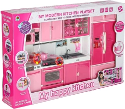 Rinkinyje yra mikrobangų krosnelė ir indaplovė, viryklė su orkaite, vitrina su kriaukle bei šaldytuvas su stalčiumi. Vaikai galės kurti pilną maisto gaminimo, kepimo ir tvarkymosi scenarijų.