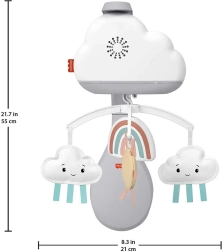 Fisher-Price kūdikių karuselė – tai raminanti muzikinė karuselė su mielais debesėlių ir saulučių formos žaisliukais, padedanti vaikams užmigti ir atsipalaiduoti.