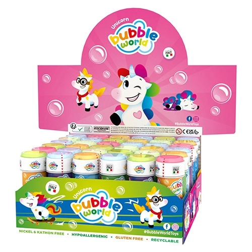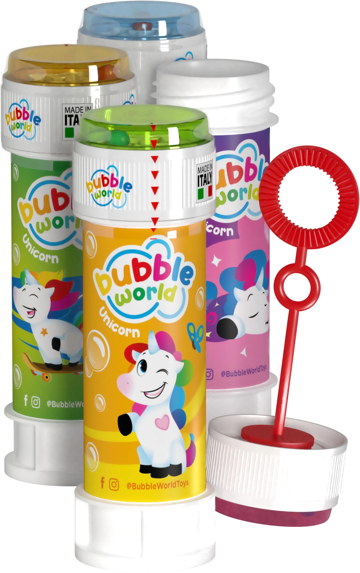 Vaikiškas burbulų pūstukas su vienaragių motyvu yra smagus būdas pradžiuginti mažus burbulų mėgėjus, turintis integruotą galvosūkį dangtelyje.