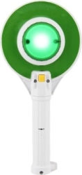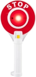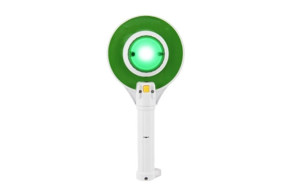 Šis plastikinis policijos ženklas turi integruotą šviesą: viena pusė šviečia raudonai, kita – žaliai, taip mokydamas vaikus pagrindinių kelių eismo taisyklių.