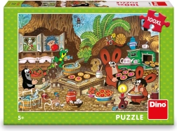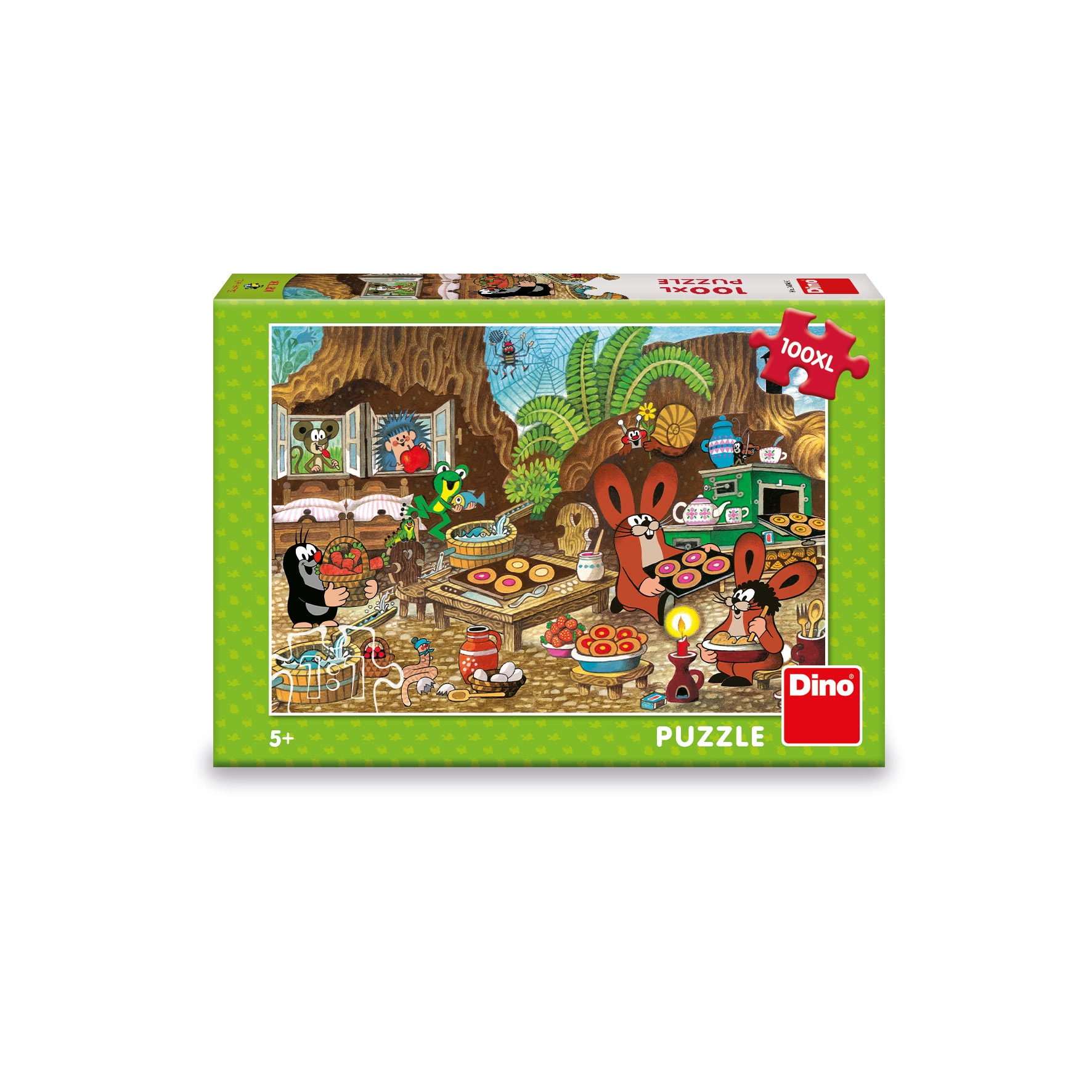 Nerkite kartu su vaikais į mylimo herojaus Kirmiuko ir jo draugų pasaulį. Dėlionė Dino – Kurmis virtuvėje 100 XL siūlo spalvingą, žaismingą iliustraciją, kupiną detalių, kurias vaikai su džiaugsmu atras dėliodami. Didelės dalys lengvai laikosi ir puikiai tinka mažesnėms vaikų rankutėms.