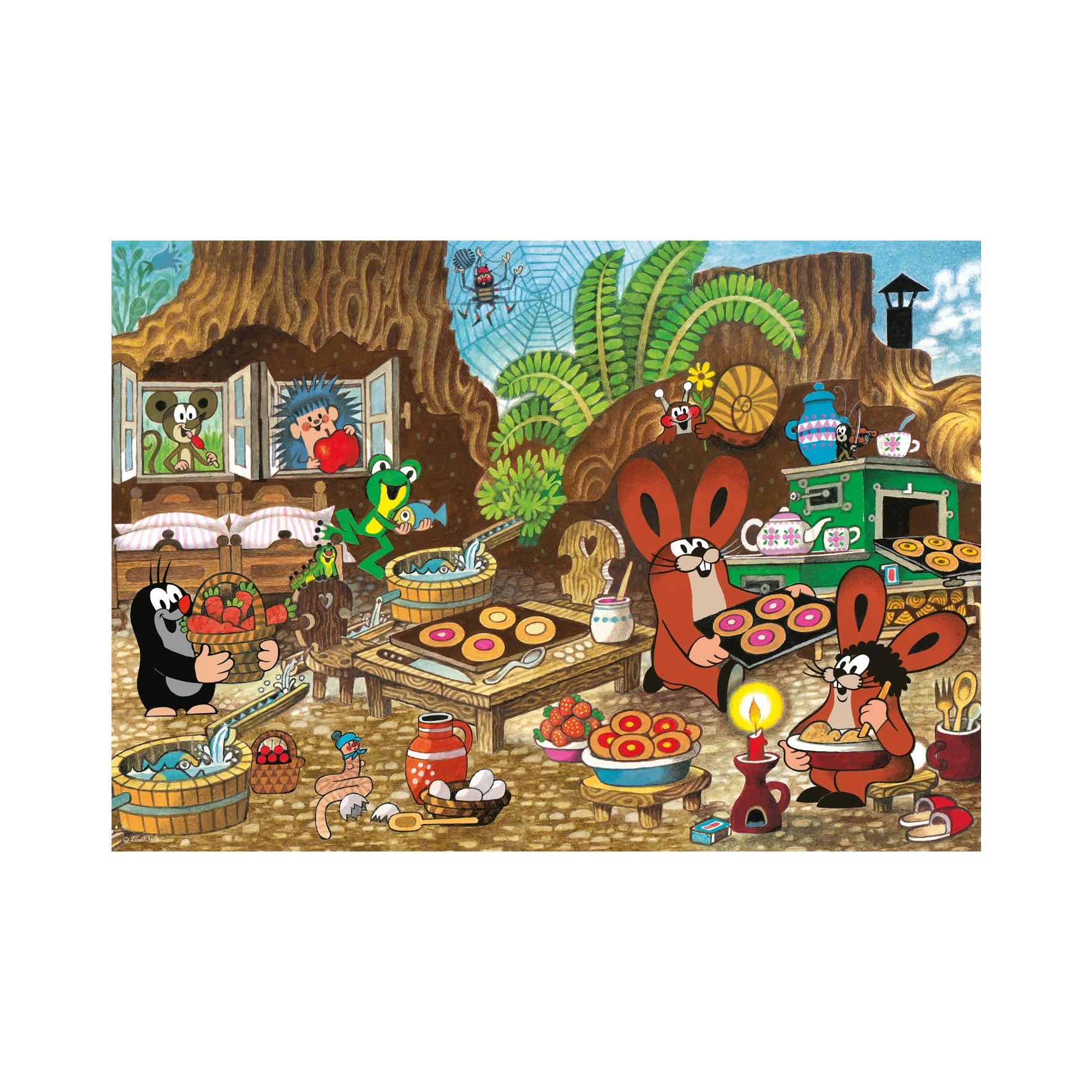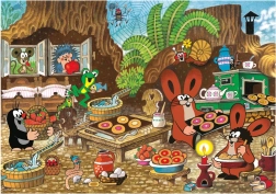 Linksma iliustracija su Kirmiuku ir jo draugais virtuvėje pilna detalių, kurios pradžiugins vaikus ir ugdys jų vaizduotę.