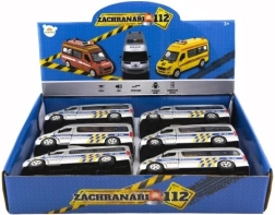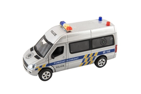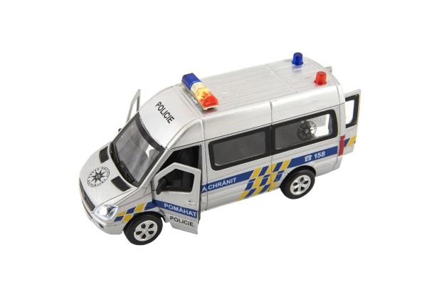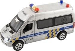 Tvirtas metalinis policijos automobiliukas su plastikiniais priedais pradžiugins visus mažus tvarkos sergėtojus. Jis siūlo šviesos ir garso efektus, atbulinės eigos įtempimą greitam startui, atidaromas dureles ir tiekiamas su baterijomis pakuotėje.