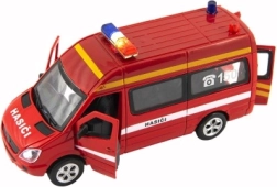 Realistiškas metalinis gaisrinės automobilis su plastikiniais priedais mažiesiems gelbėtojams. Siūlo šviesos ir garso efektus, atbulinės traukos mechanizmą greitam važiavimui, atidaromas priekines ir galines dureles bei kompaktišką 15 cm dydį. Baterijos įtrauktos į pakuotę, todėl pramogos prasideda iš karto.