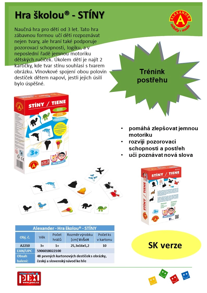 Atraskite linksmą edukacinį žaidimą patiems mažiausiems, kuris lavina kombinavimo gebėjimus, stebėjimą ir pastabumą. Sudėliokite 24 poras iš šešėlių ir spalvotų paveikslėlių su gyvūnais, muzikos instrumentais ir kasdieniais daiktais. Idealu vaikams nuo 3 metų – žaismingai skatina logiką ir smulkiąją motoriką.