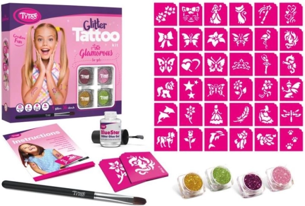 TyToo Glamorous rinkinys idealiai tinka vaikų šventėms, karnavalams ir kūrybai namuose. Dėl plataus šablonų pasirinkimo ir keturių spalvų lengvai sukursite ryškius, blizgius motyvus, kurie pradžiugins kiekvieną mažą puošeivą. Baigtus raštus galite dar labiau paryškinti savitvirtinamais akmenėliais ir judančiomis akutėmis.