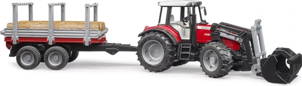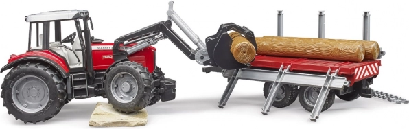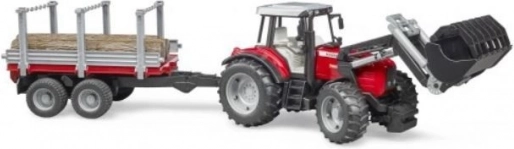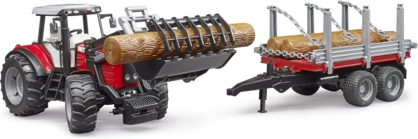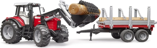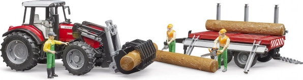 Realistiškas rinkinys mažiesiems miškininkams: traktorius MASSEY FERGUSON 7480 su veikiančiu priekiniu krautuvu ir rąstų pervežimo priekaba. Siūlo atidarantį variklio dangtį, vairuojamą priekinę ašį, minkštas profiliuotas padangas ir aukščio reguliuojamą vilkimo įrangą. Rinkinyje yra 4 rąstai. Pagaminta Vokietijoje, nuo 3 metų.