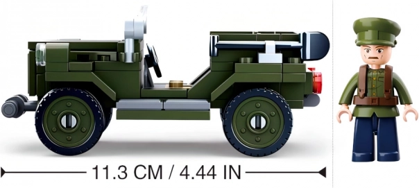 Rinkinyje yra 111 detalių ir figūrėlė su karine apranga, leidžianti sukurti detalų ir realistišką modelį.