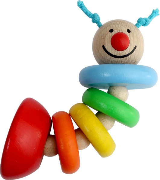 Šis spalvingas medinis vikšrelis – puikus pirmasis žaislas patiems mažiausiems. Dėl gumelėmis sujungtų segmentų jį lengva lankstyti, sukti ir grąžinti į pradinę padėtį, o tai skatina aktyviai tyrinėti ir lavinti rankų bei akių koordinaciją. Kompaktiškas dydis idealiai tinka mažai vaiko rankytei.