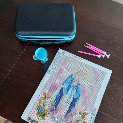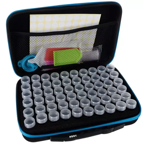 Šis praktiškas rinkinys palengvina kiekvieno deimantinio siuvinėjimo mėgėjo organizavimą ir kūrybą. Viskas saugiai sudėta tvirtame, atspariame dėkle su užtrauktuku, įskaitant tvarkingai įkeltus indelius putplasčio įdėkle ir tinklinę kišenę priedams. Dėl tokio sprendimo visi kristalai ir įrankiai visada po ranka ir puikiai surūšiuoti.