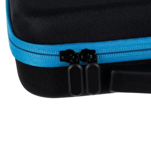 Patvarus dėklas su užtrauktuku ir rankena saugo įrangą ir laiko indelius bei priedus tvarkingai sudėtus – idealu kelionėms ir namų dirbtuvėms.
