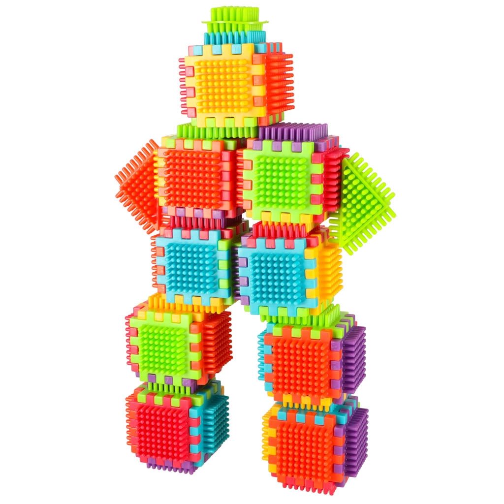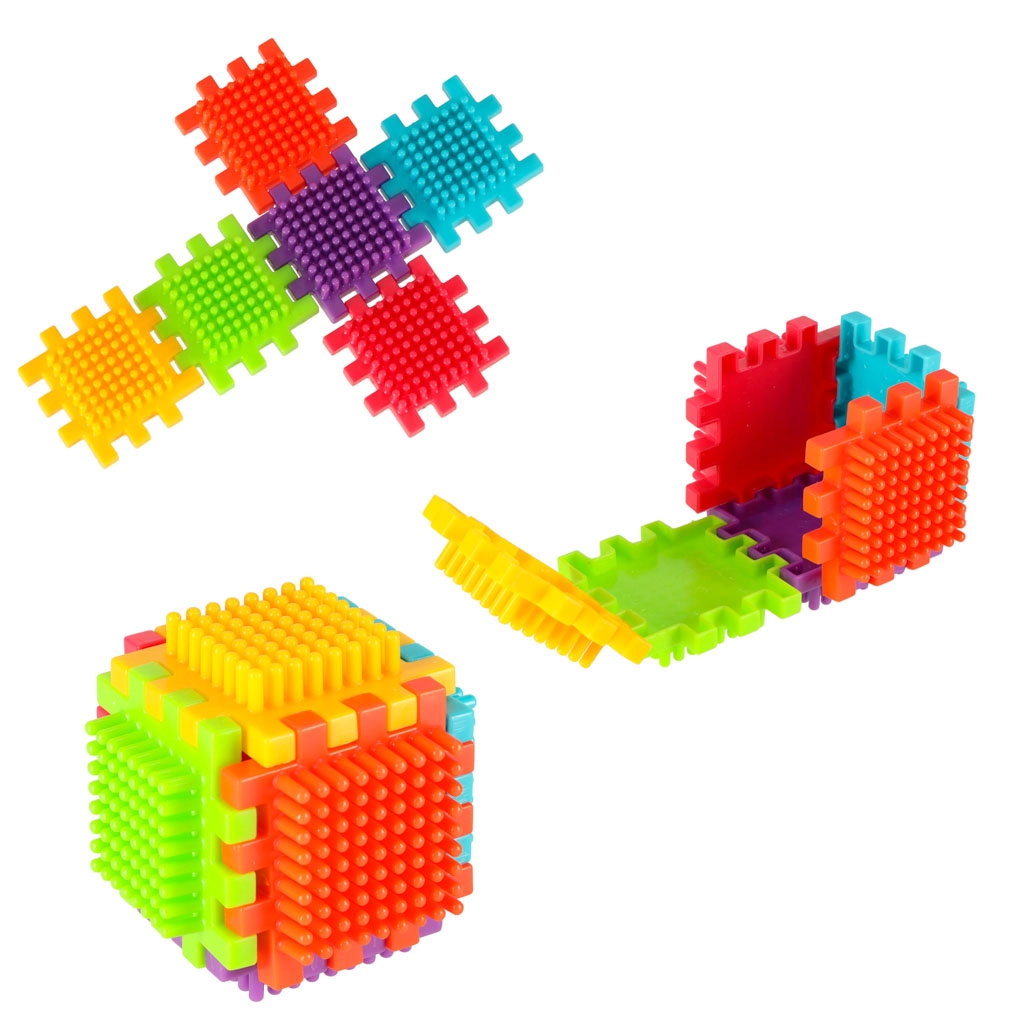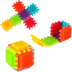 Ežiukų tekstūra ir dalių forma užtikrina tvirtą sujungimą, kurį vaikai lengvai įveiks be įrankių ir sudėtingumo.