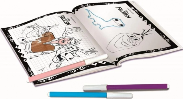 Spalvoti flomasteriai ir piešiniai Frozen tema padeda vaikams lavinti kūrybiškumą.